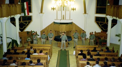 Sunday morning (April 7), we left early from Csurgó to sing at the Kaposvár Reformed Church during their worship service. Most of the congregation had no idea we would be there, and many seemed surprised to hear such energetic music performed in their sanctuary. |