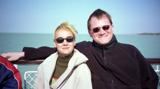 After a day of walking around Budapest, Andris and Ildi put us on a bus with instructions to get off at the fifth stop and go a few blocks to our right to find our lodging for the night. This was our last view of our Hungarian hosts as we boarded the bus. |