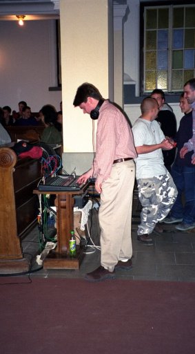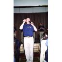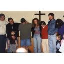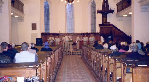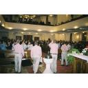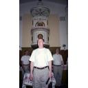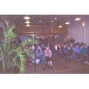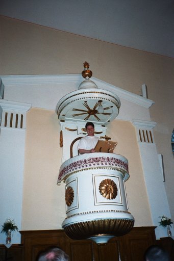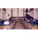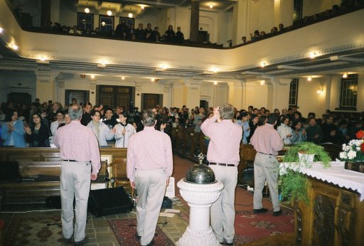 Singing during the Kaposvár service. Note Zoltán (the priest) overseeing things from the pulpit. |