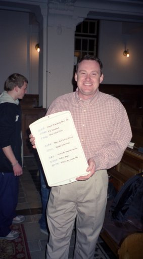 This is one of my all-time favorite pictures from the tour ... what we saw while we were singing at Győr. I swear I do not know who arranged the sign like that. Honest. |