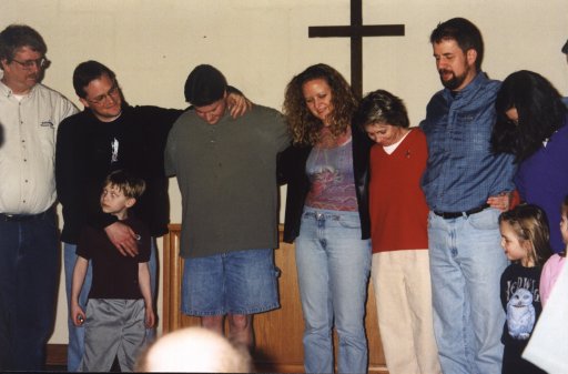 We met at the church before leaving in taxi vans for the airport. Here we are gathering with loved ones and well-wishers for a blessing prayer to send us on our way. |
