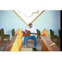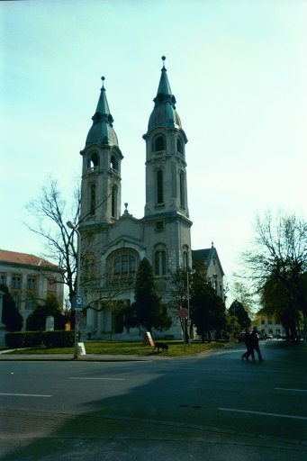 Tuesday evening (April 9) we drove to Székesfehérvár to sing. Székesfehérvár is a large industrial city, and the church there was jammed in amongst all manner of commercial storefronts on a busy thoroughfare. We arrived at the church with barely enough time to set up and rehearse. While Dani and Sanyi were setting up the sound equipment, Michael checked out the view from the pulpit. |
