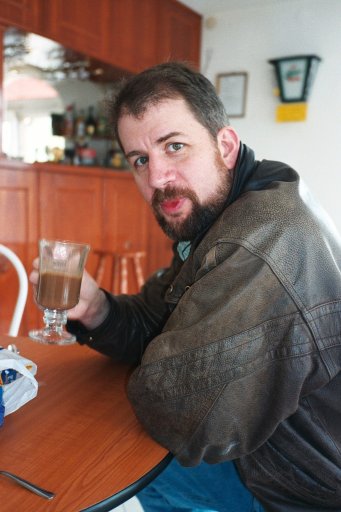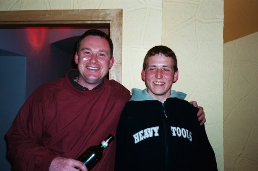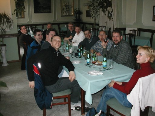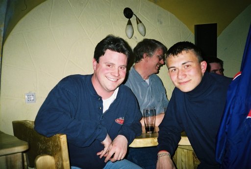 After supper, we walked downtown to one of the local watering holes to come down from our high. We were joined by a few of the Pápa locals, including Norbi (on the right, with Michael) |