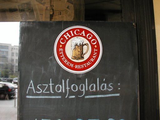 Back home, the choir rehearses every Wednesday night. After practice, most everybody heads to Old Chicago to quaff a beer and tell some lies. We were looking for a place to eat in Budapest and stumbled across this place. How could we not eat there? |