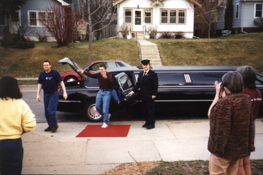 After ten or twelve hours on airplanes, we finally arrived back in Minneapolis on Sunday evening. Having heard of our reception in Pápa, our wives arranged for transportation befitting rock stars to get us back to the church. |