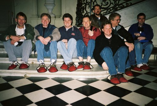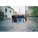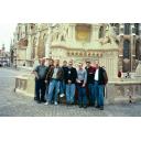 Here we are in a group shot, standing below the statue of Saint Stephen and the south end of his northbound horse (Budapest). |